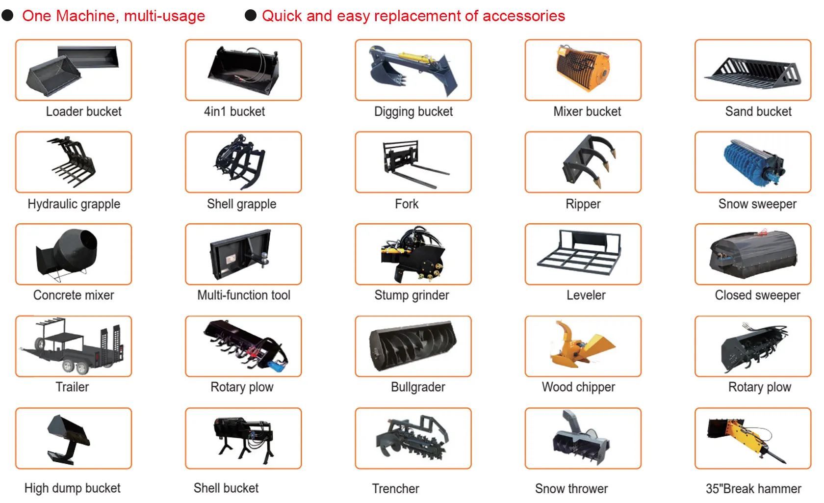 A: Our loader supports various attachments, including buckets, pallet forks, augers, and more.